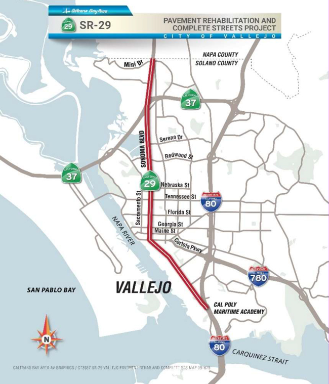 SOLANO COUNTY – Caltrans is scheduled to start construction on the Rehabilitation and Complete Street Project on State Route 29 (Sonoma Boulevard) in October.
